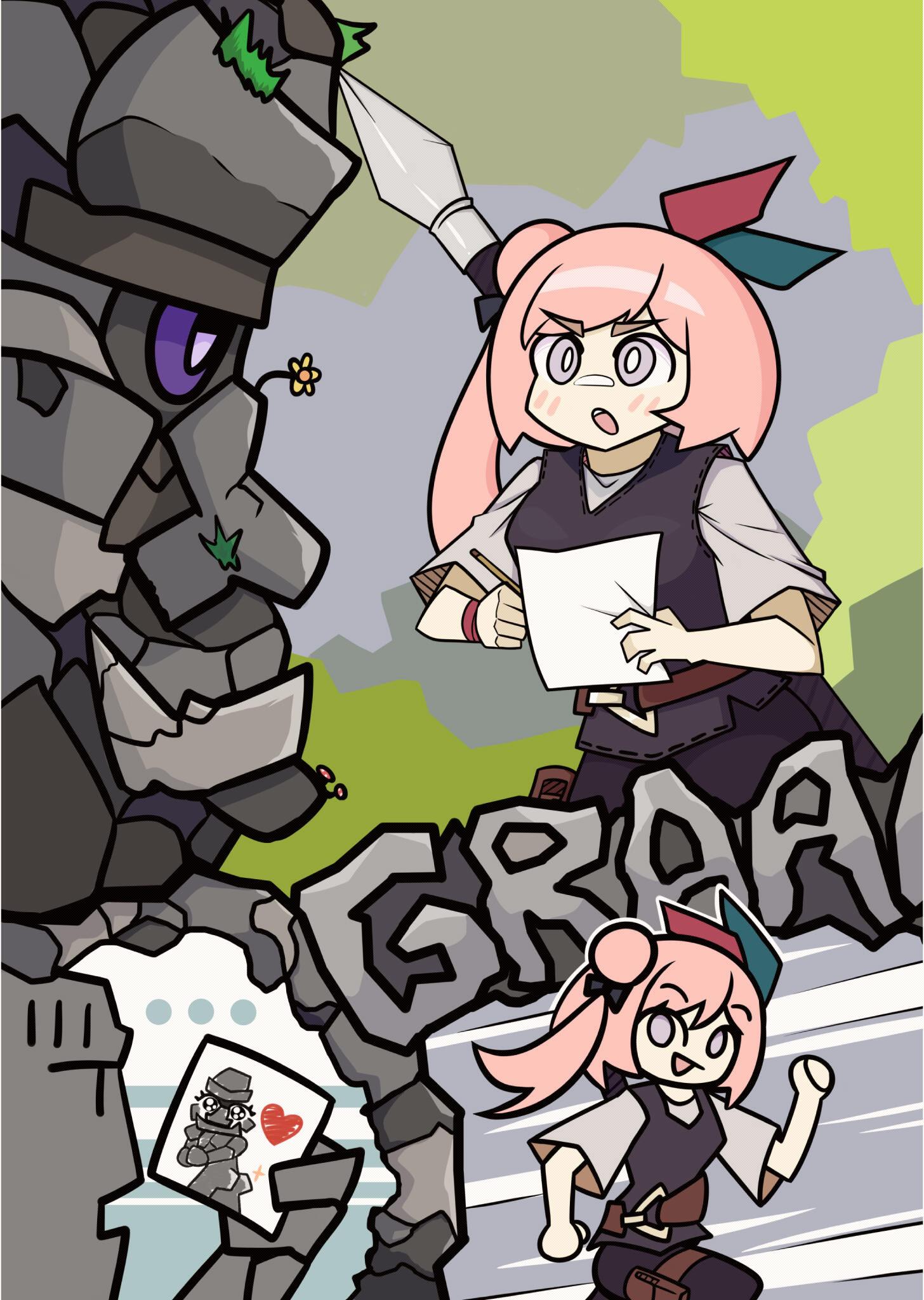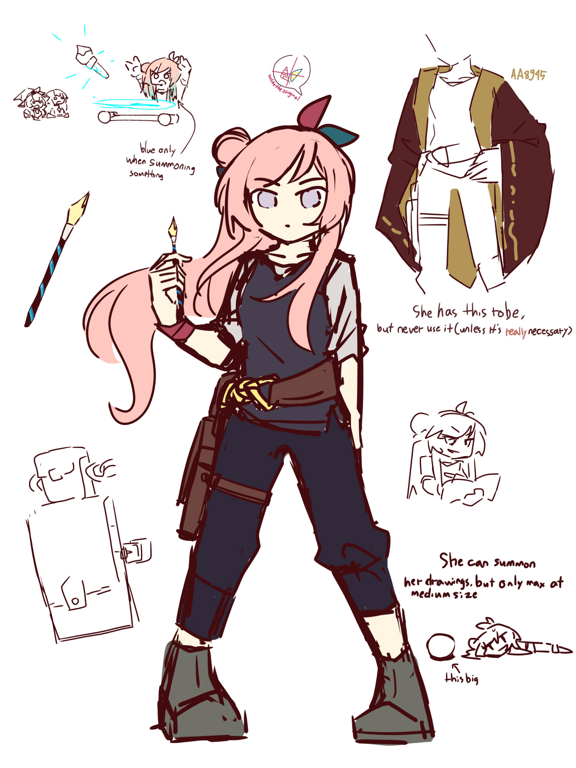 She can summon her drawings which is awesome, but not as big as what regular stuff she can summon.